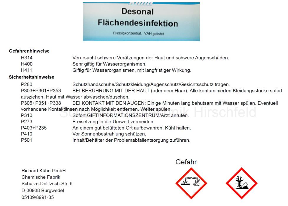 Desonal ist frei von Aldehyden und Alkoholen. VAH gelistet.
