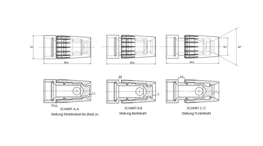 Kneipp'sche Garnitur 3/4" Ø 27mm Schlauch und 3/4" Überwurfmutter mit verstellbarer Strahldüse