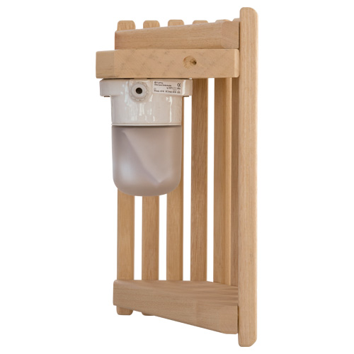 Sauna Leuchte als Wand- & Eckmontage, komplett mit Schirm, Montageklotz und Innenleuchte , aus Abachi-Holz,