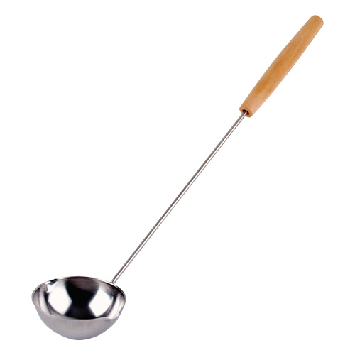 Aus hochwertigem, polierten Edelstahl, Griff aus behandeltem Buchenholz. Länge: 58 cm Inhalt: ca. 300 ml