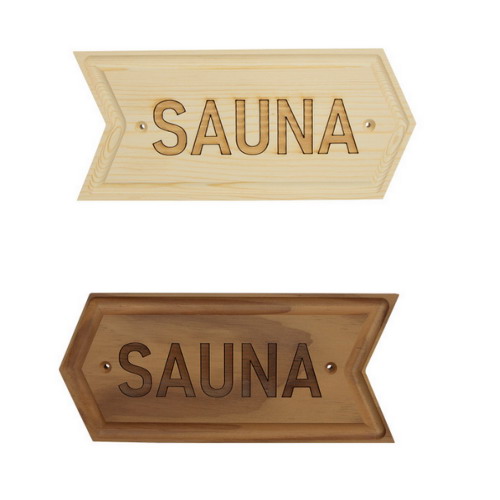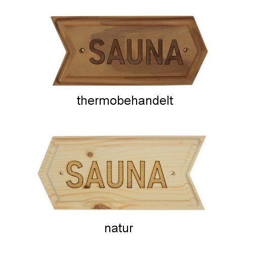 Formschönes Holzschild mit der Aufschrift "SAUNA" mit Pfeilrichtung - wahlweise links oder rechts. Es stehen 2 Holzarten zur Verfügung - thermobehandelt ( dunkel ) oder natur ( hell ). Maße: ca. 26 cm breit ca. 11,3 cm hoch ca. 1,6 cm tief